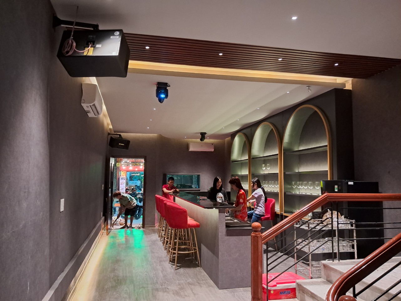 Chiếu sáng Bar, Pub thường sử dụng ánh sáng đa sắc, cường độ thấp, kết hợp hiệu ứng chuyển động, đèn led, spotlight và đèn neon để tạo không gian huyền ảo, sôi động và gợi cảm xúc. Ánh sáng tập trung vào quầy bar, sân khấu và khu vực khách, giúp tôn lên không khí giải trí và cá tính riêng của quán.
